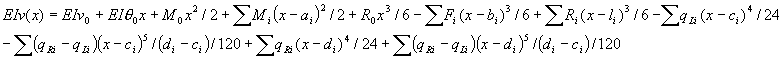 | If the bending moment function M(x) is known, the deflection function v(x) could be found from the basic differential equation of the deflection curve of a prismatic beam: |