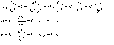 | Figure 1. Simply supported plate compressed in two directions by uniformly distributed load Nx and Ny. |