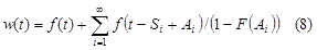 | Failure intensity w(t) is also easy to calculate taking derivative of (6) and (7) with respect to time t. Combining the result we obtain |