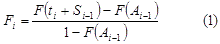 Our calculations are based on the advanced Monte Carlo method. It significantly improves raw simulation suggested in [2], especially in case of Frequency of Failure and Unavailability calculation. We also introduced repair time in the calculation and implemented it for the following underlying distribution functions: Weibull, Normal, Log-Normal. The detailed description of the method with examples demonstrating accuracy and efficiency of the method you can find in [3]. Here we provide a brief description of the main idea. Consider the g–renewal stochastic process represented in the Figure 1. Here ti and τi are time to failure and time to repair, respectively, corresponding to the i–th event of the g–renewal process. We consider the conditional probability of failure at the time Si-1+ti assuming the component is not failed at current time Si-1 , but is aged to virtual age Ai-1 : |