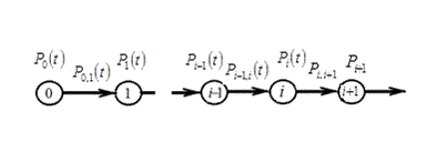 | where Pi,i+1(t) is the probability of transition from state i to state i+1 at given time t under the condition that the unit is in the i–th state. Together with (3) it yields |