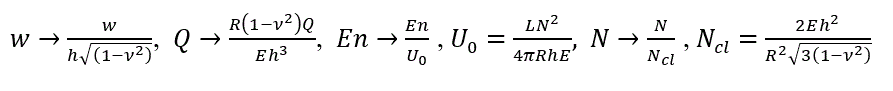 | the boundary value problem does not depend on shell parameters if deflections are less than shell thickness. If they are significantly greater, then the shell behavior depends mostly on Batdorf parameter |