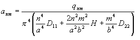 | In the case of uniformly distributed load shown in Fig. 1 we have the formula for the coefficients qnm |