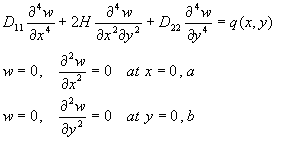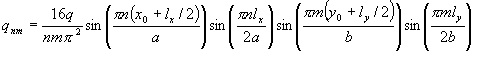 | According to the Navier method the solution of the boundary value problem w(x,y) as well as load function q(x,y) could be represented as double trigonometrical series |