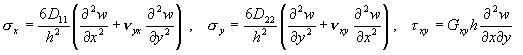 | For calculation stresses in the bottom layer of the plate we use the following formulas: |