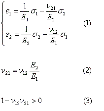 ν21. We assume that E2≥E1. This case corresponds to the structure reinforced mostly in the circumferential direction. The second Poisson’s ratio is calculated using formula (2). We check also the restriction (3) before the calculation.